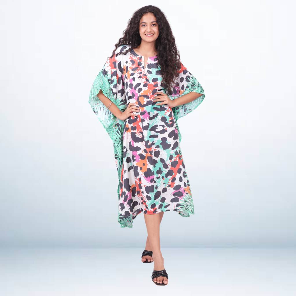 Step into bold, breezy style with this eye-catching Animal Printed Kaftan from Kuberaa Fashions – Boutique Exclusive Collection. Made from lightweight and wrinkle-resistant polyester fabric, this kaftan is a celebration of vivid colors and modern wild-inspired prints.