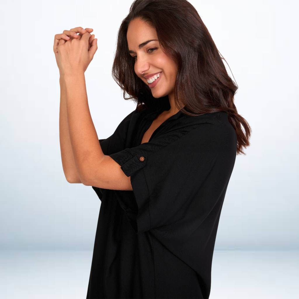 The free size design fits up to a 48" bust, with a flowy 48" length, making it a versatile piece for various occasions—whether it's a casual day out, a vacation, or an evening gathering.