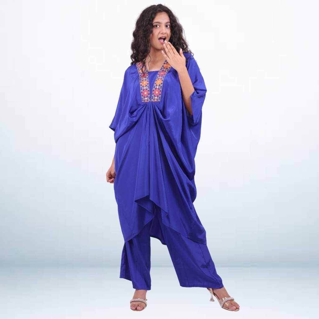 Design: V-neck with Multicolor Embroidery | Loose Draped Fit