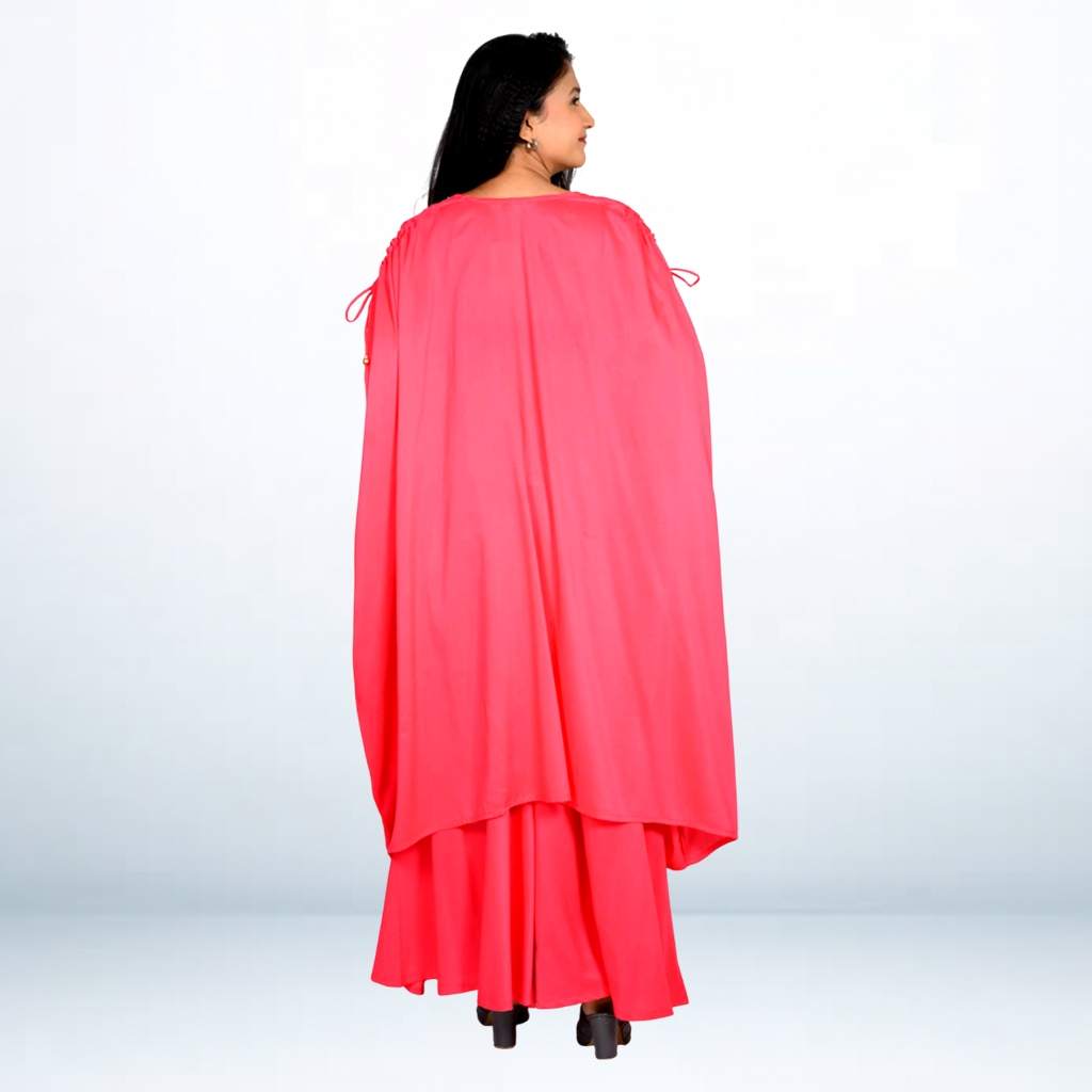 STYLE: Flowing kaftan silhouette with dramatic side slits and cape-like sleeves for graceful movement and comfort