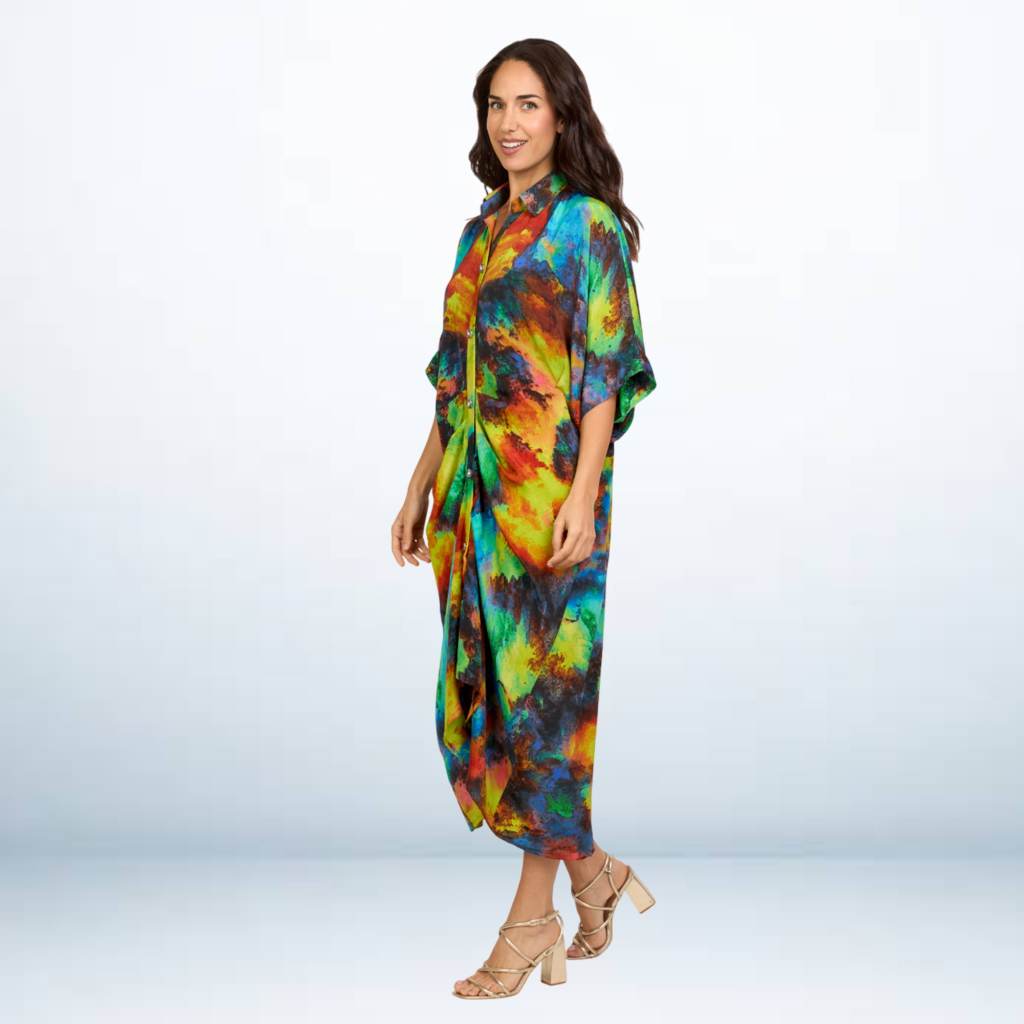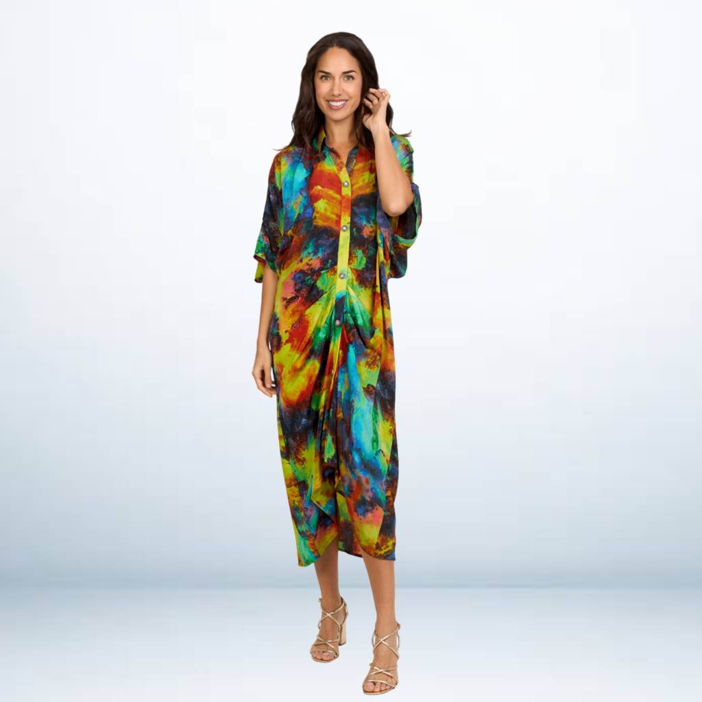 Tie dye Printed Long Kaftan from the Kuberaa Fashions Boutique Exclusive Collection. Crafted from luxurious Soft fabric.