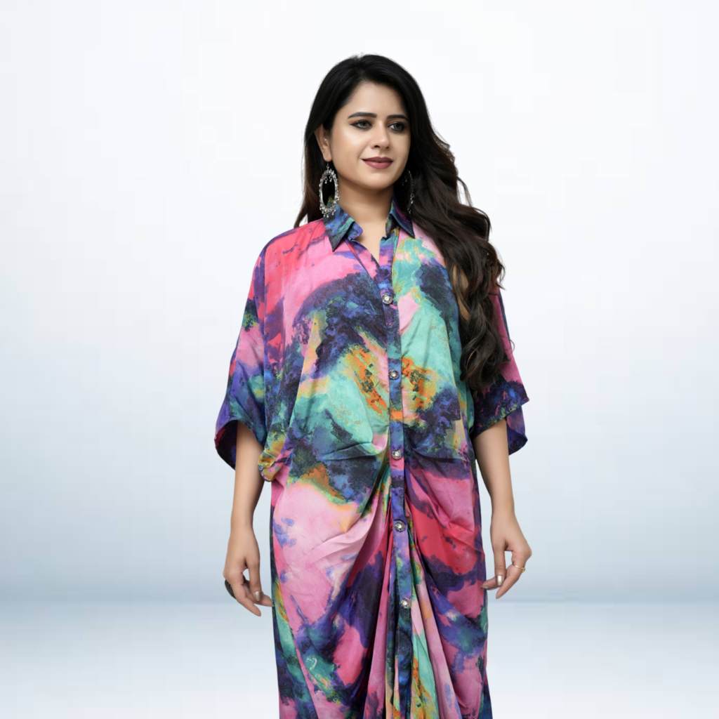 Tie dye Printed Long Kaftan from the Kuberaa Fashions Boutique Exclusive Collection. Crafted from luxurious Soft fabric.