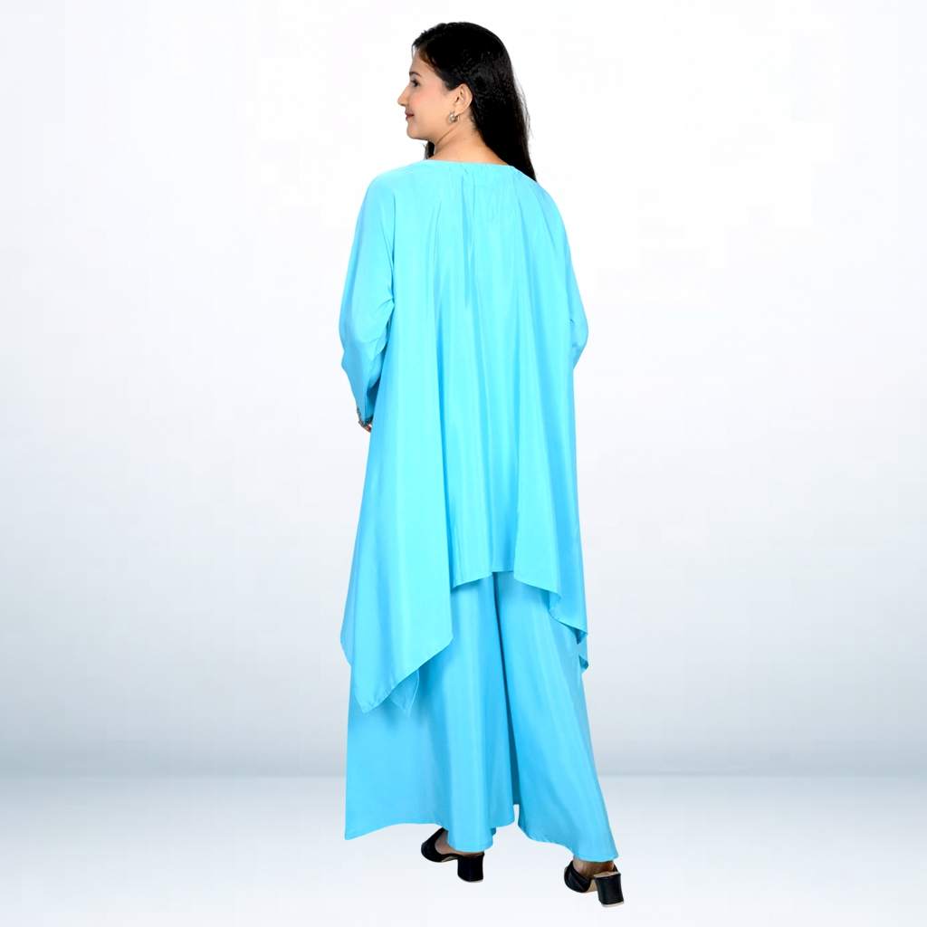 Elevate your festive and partywear wardrobe with the Cobalt Embellished Kaftan Pant Set from Kuberaa Fashions. This stunning set features a flowy free-size kaftan with intricate hand-embellished detailing on the neckline, paired with comfortable crepe pants available in sizes M to 3XL. Crafted for effortless elegance, this set blends contemporary flair with ethnic charm – ideal for special occasions, evening soirées, or festive gatherings. The rich cobalt blue shade adds a bold and regal touch to your style.