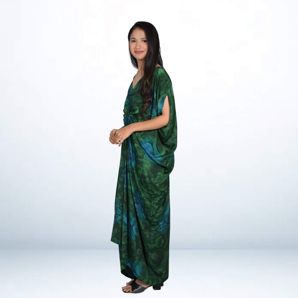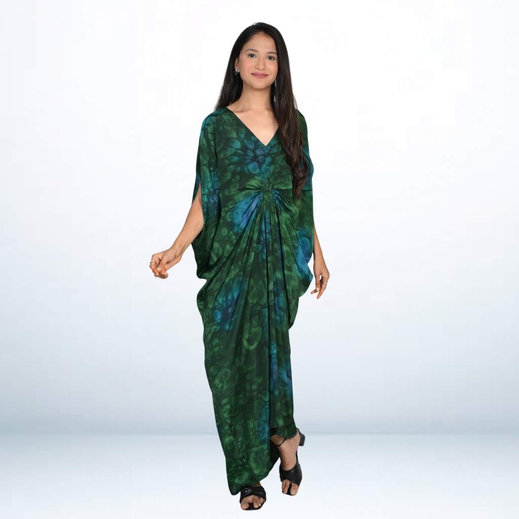 Make a bold yet graceful statement with our Printed Stylish Designer Kaftan Dress, crafted for modern women who love comfort blended with elegance. From the Kuberaa Fashions Boutique Exclusive Collection, this unique dress features a vibrant tie-dye pattern, flowy silhouette, and a chic metal ring detail at the neckline, adding a stylish twist. Made from soft, breathable polyester fabric, this kaftan dress fits sizes M to 3XL with ease, draping beautifully on all body types. Ideal for resort vacations, casual brunches, or festive occasions where you want to stand out effortlessly.