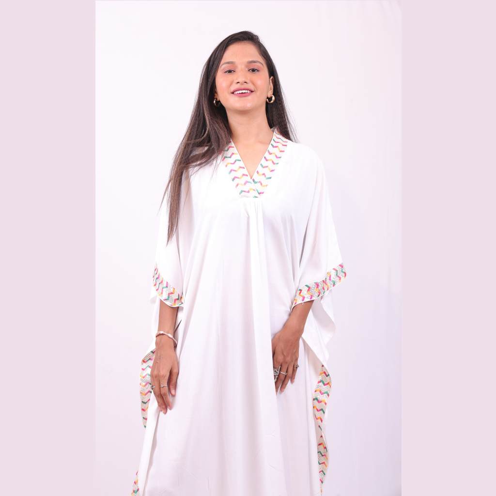 Exclusive Women's Viscose Kaftan Maxi Dress with Chevron Trim, Long Gown
