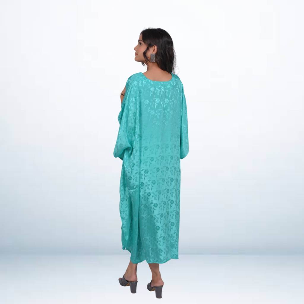 Step out in style with this jacquard tunic kaftan, designed for comfort and elegance. Crafted from premium jacquard fabric, it features a textured weave that adds depth and sophistication to your look. The relaxed silhouette with flowy sleeves makes it easy to wear, while the versatile design pairs effortlessly with jeans, leggings, or as a statement piece on its own. Perfect for casual outings, vacations, or everyday wear with a stylish twist.