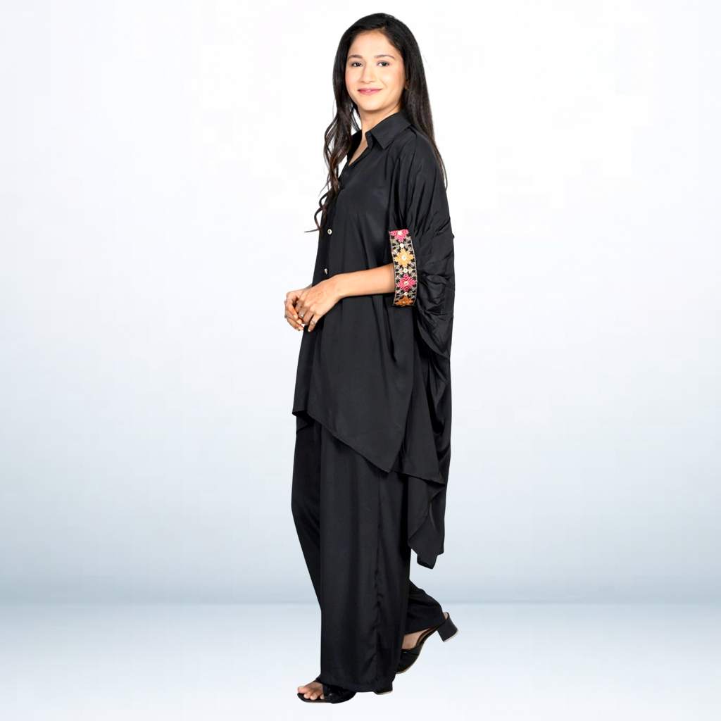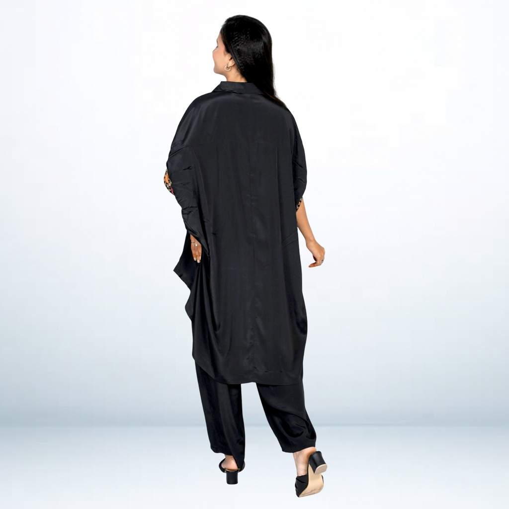 Step into effortless grace with this Crepe Silk Kaftan with Pant Set from Kuberaa Fashions' boutique exclusive collection. Made from breathable rayon fabric, the kaftan features a relaxed silhouette enhanced by delicate embroidery work on the neckline. The straight-fit pant adds structure while keeping the overall look flowy and comfortable. Ideal for festive gatherings, casual celebrations, or elegant daywear styling.