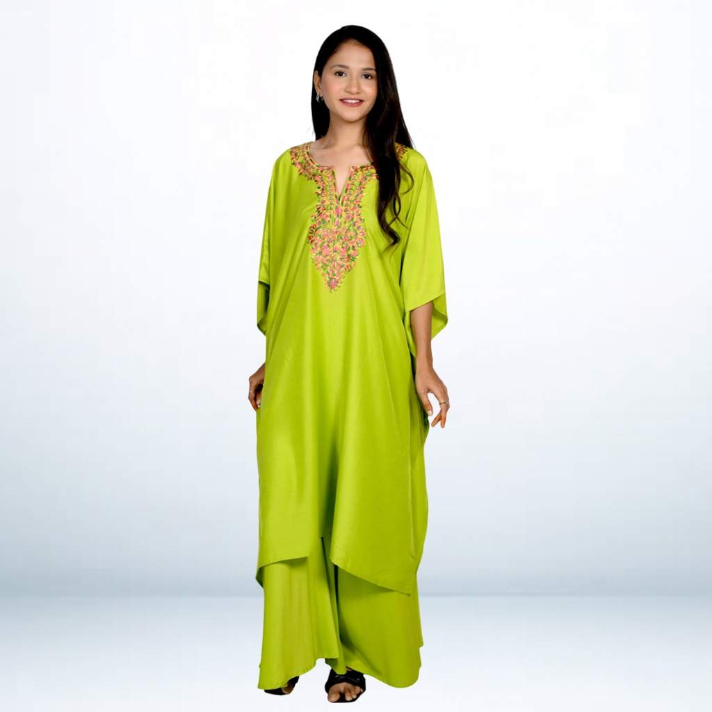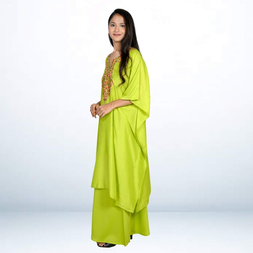 Design: V-neck with Multicolor Embroidery | Loose Draped Fit
