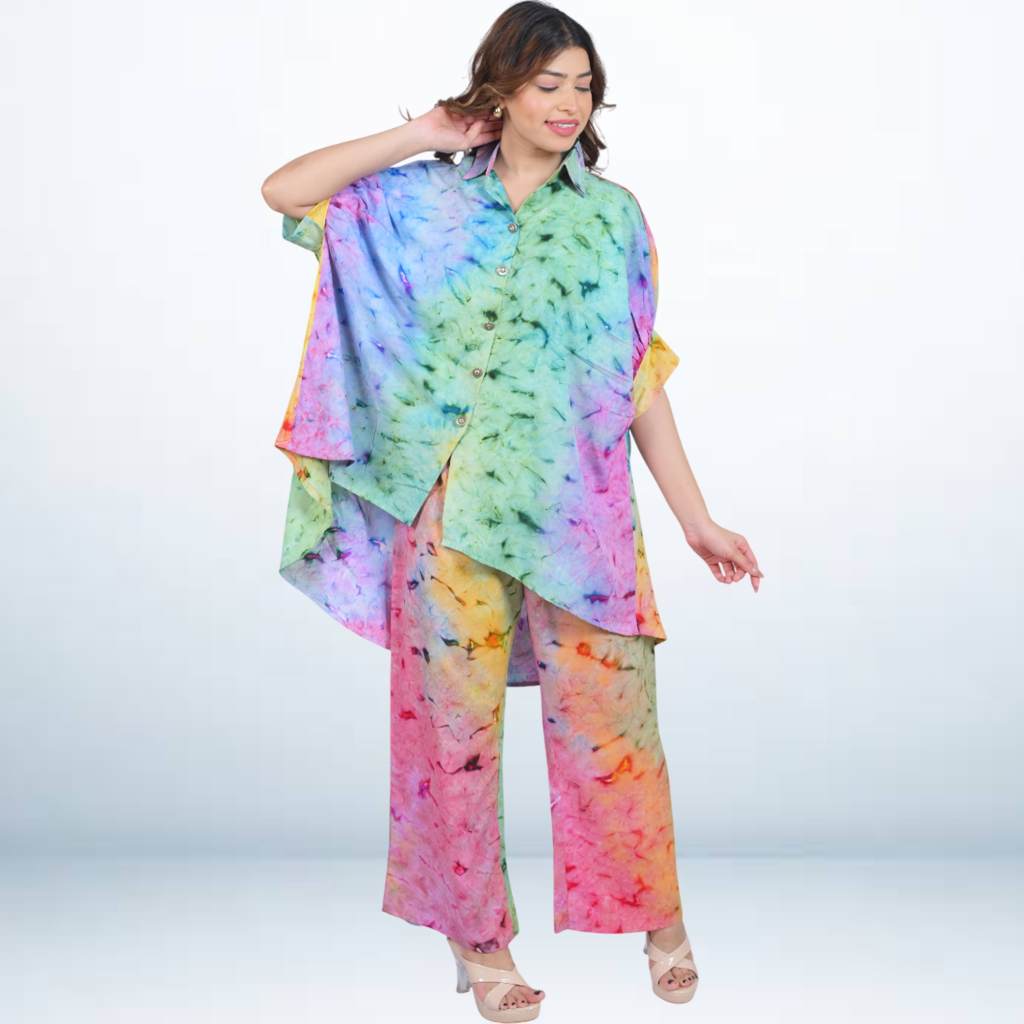 Step into effortless style with our Tie-Dye Shirt Style Co-ord Set from the Kuberaa Fashions Boutique Exclusive Collection. This fashionable two-piece ensemble features a relaxed-fit button-down shirt with a vibrant tie-dye pattern, paired with comfy matching pants available in sizes M to 3XL. Made from lightweight polyester fabric, it offers a breathable, wrinkle-resistant, and stylish silhouette perfect for brunches, vacations, or casual day-outs. Whether you’re lounging or stepping out, this co-ord set delivers the ideal mix of comfort and trend.