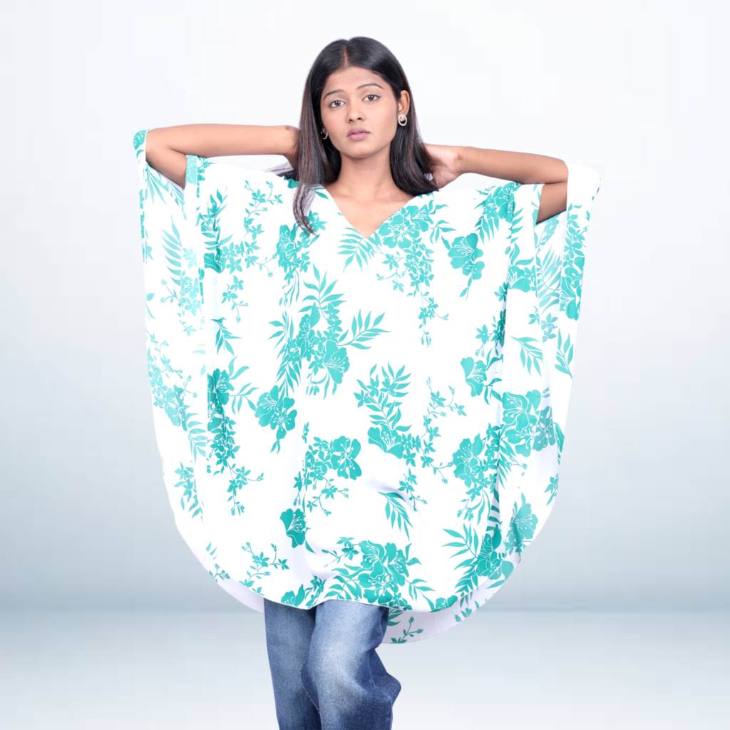 Add a pop of style to your wardrobe with this Printed Short Kaftan Tunic, crafted from soft, breathable fabric for all-day comfort. Featuring vibrant digital prints and a relaxed silhouette, this kaftan tunic offers a chic yet effortless look. The adjustable drawstring at the waist ensures a flattering fit, while the short length makes it perfect to pair with jeans, shorts, or leggings for casual outings or relaxed gatherings.