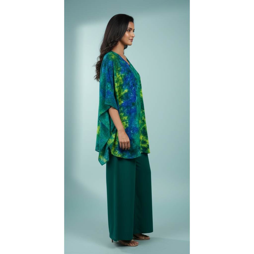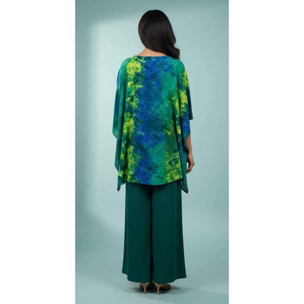 Refresh your wardrobe with this elegant green and blue printed kaftan top paired with matching palazzo pants. Designed for modern comfort with a stylish edge, this co-ord set blends vibrant color with a relaxed fit, making it perfect for both everyday wear and special casual occasions.